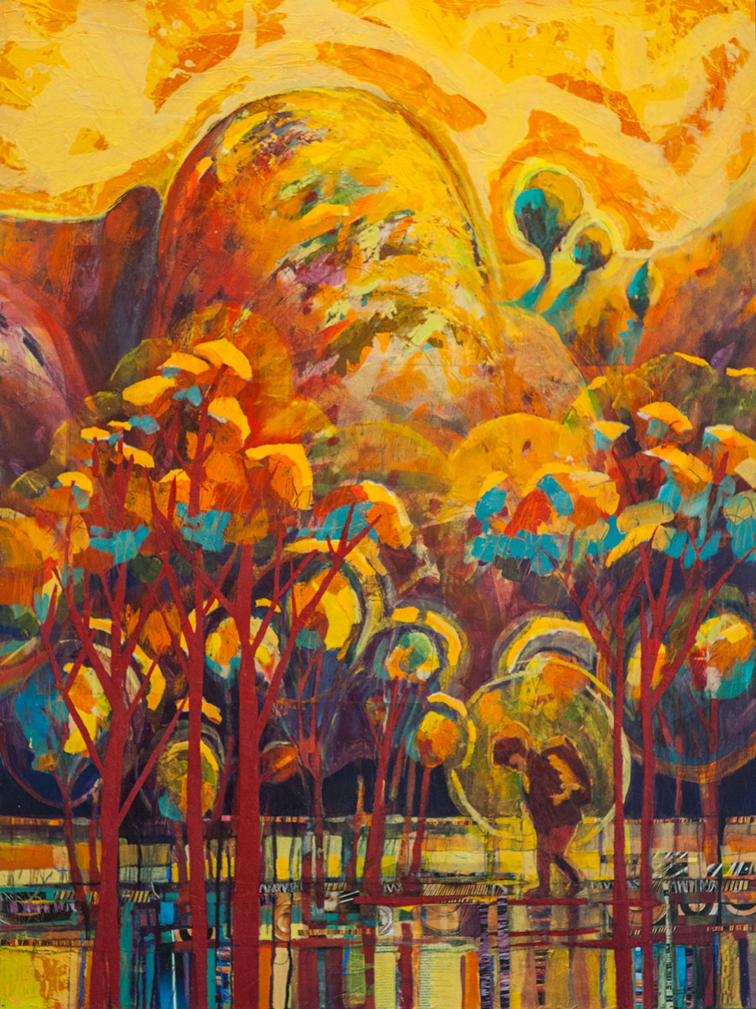acrylic, collage and mixed media on board